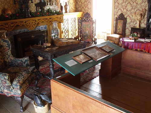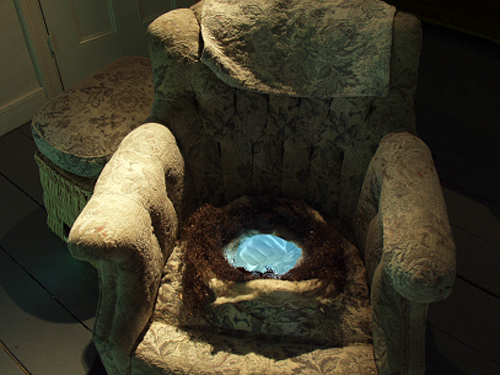 Using the shoreline house of Alice Austen, the pioneering Victorian photographer, I wanted to allow the house itself—the walls, the baseboards, the keyholes, and underneath cushions—to tell the story of her complicated life and coded sexuality. Video loops and camera obscuras were embedded into various furniture and household objects; video projections, cast shadows and mirrors were incorporated into the existing interior. Using the notions of the domestic interior and the camera as visual conceits for the self, this installation explored the complex relationship between the “eye” and the “I.”