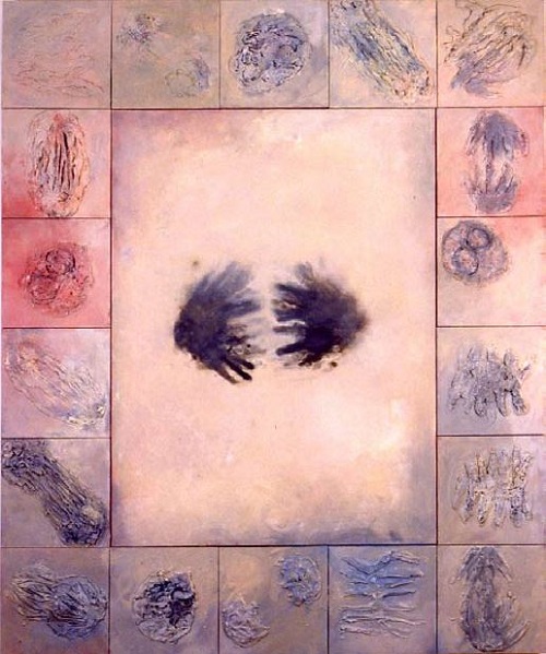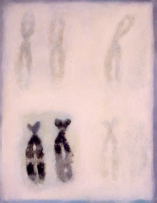 A. M. HOCH, Chromosome in Blue, oil on canvas, 51 x 54 inches, 1998 A. M. HOCH, The Blue Inside, oil on canvas, 60 x 66 inches, 2006 A. M. HOCH, Four Pairs, oil on canvas, 36 x 24 inches, 1999 A. M. HOCH, Little Pink, oil on canvas, 30 x 24 inches, 2001A. M. Hoch, Doubling (blue background), oil on canvas, 36 x 48 inches, 2000A. M. HOCH, Big Pink, oil on canvas, 50 x 60 inches, 1997 A. M. HOCH, Mitosis (wood panel) # 2, oil on canvas, 45.5 x 36.25 inches, 1999A. M. HOCH, Rending, oil on canvases, 72 x 60 inches, 2001A. M. HOCH, Coming Apart (white background), oil on canvas, 36 x 48 inches, 2000A. M. HOCH, Beginning, oil on canvas, 36 x 48 inches, 2000