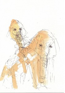 A. M. HOCH, Woman Turning into an Elephant, ink wash on paper, 7 x 5 inches, 2009