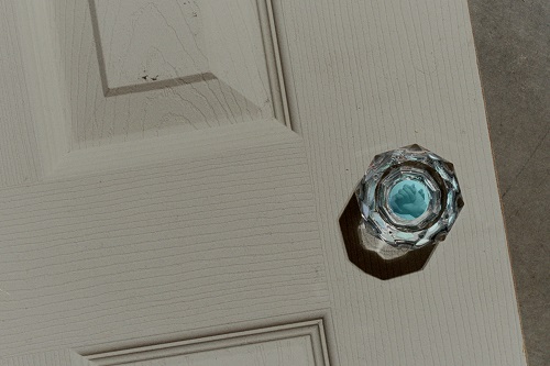 A. M. HOCH, Mitosis: Formation of Daughter Cells, DETAIL: door on the floor with glass doorknob with embedded video, 2004