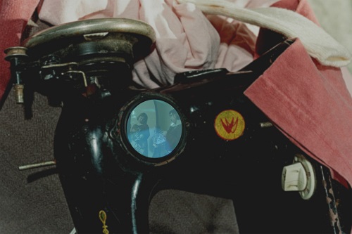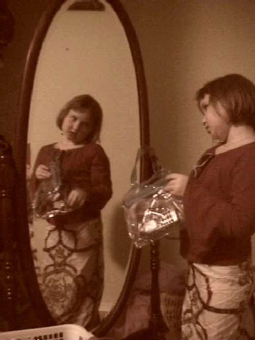 A. M. HOCH, Mitosis: Formation of Daughter Cells, DETIAL, sewing machine with embedded video loop of girl playing dress up infront of a mirror, 2004