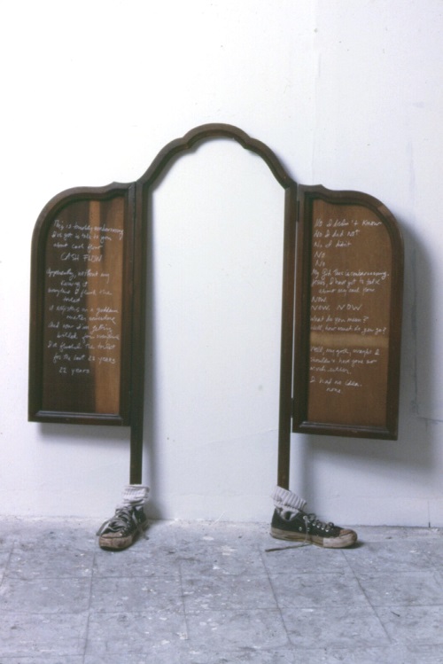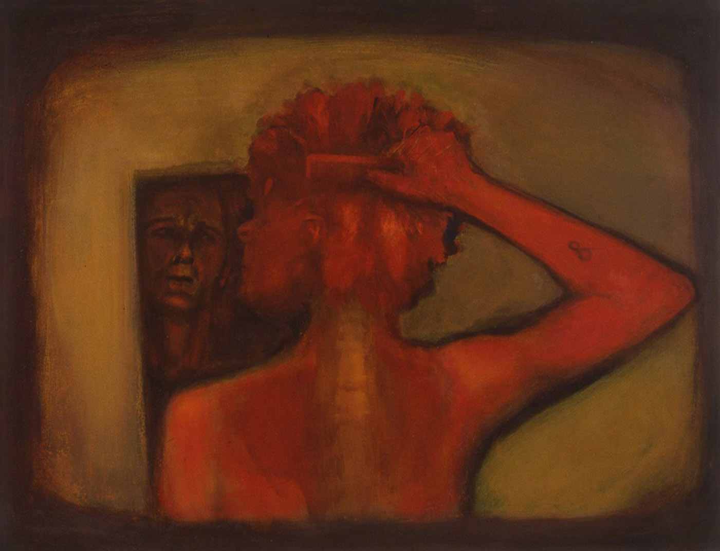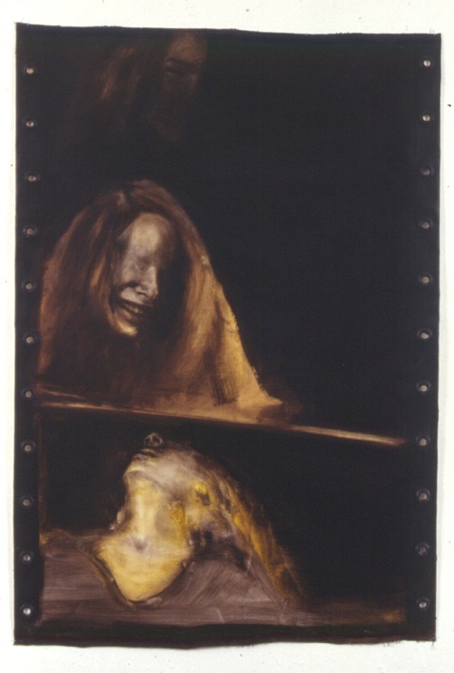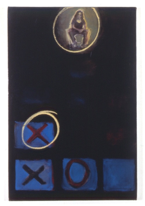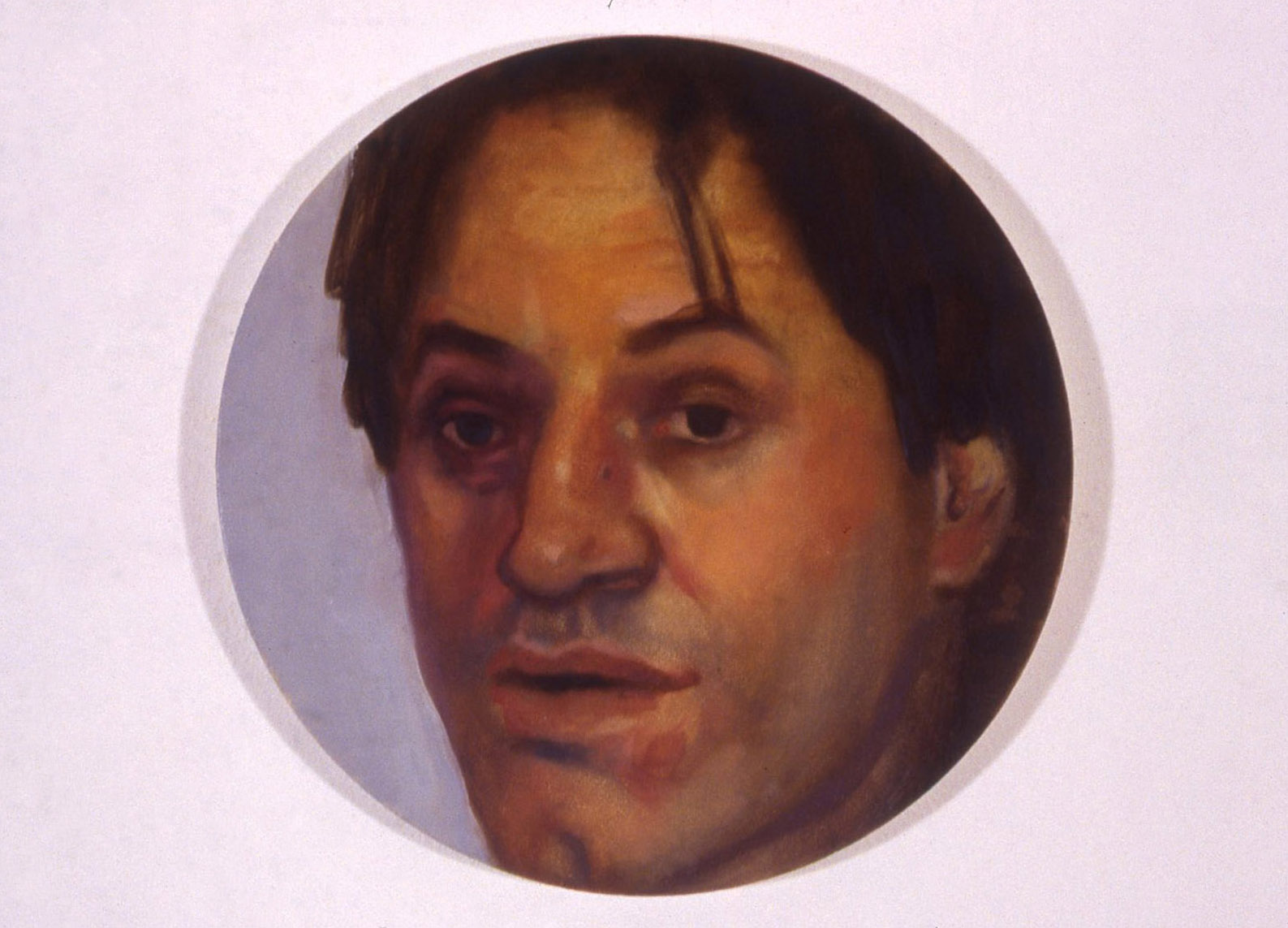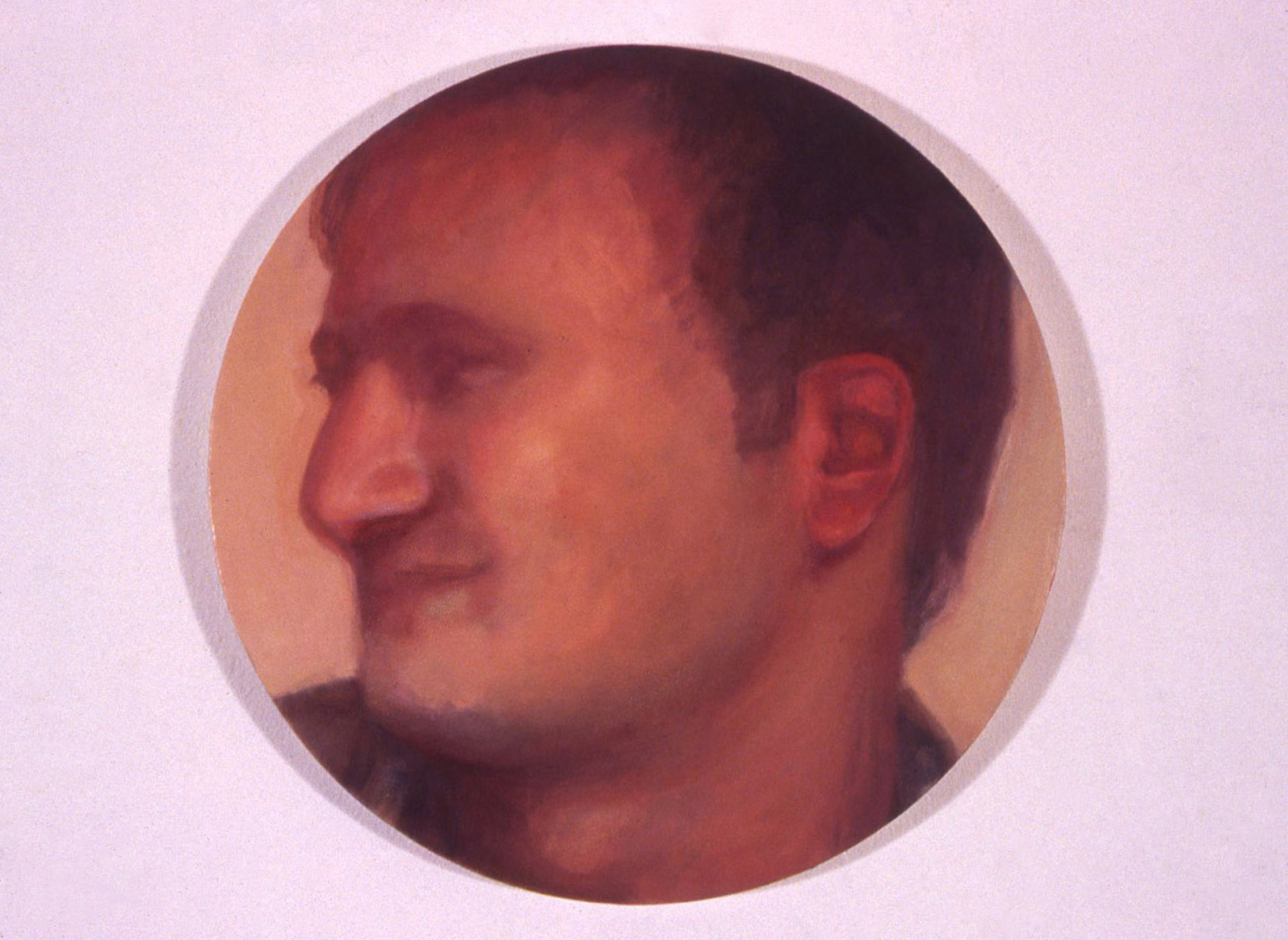 A. M. HOCH, Portrait of Tom, oil on canvas, 29.5 x 49.5 inches, 1993 A. M. HOCH, Portrait of David, oil on canvas, 10 inches in diameter, 1999A. M. HOCH, Portrait of Piergiorgio, oil on canvas, 10 inches in diameter, 1999A. M. HOCH, Portrait of Stefi, charcoal on canvas, 10 inches in diameter, 2010A. M. HOCH, Portrait of Kate, oil on canvas, 32.5 x 42 inches, 1993A. M. HOCH, Self-portrait (as a film strip); oil on canvas with grommets, 31 x 45.5 inches, 1991A. M. HOCH, Self-portrait as a Game Show Contestant, oil on canvas, 36 x 24 inches, 1992A. M. HOCH, Self-portrait as a Game Show Contestant, DETAIL, oil on canvas, 1992A. M. HOCH, Self-portrait as a Rock Star; oil on canvas with grommets, 52 x 108 inches, 1991A. M. HOCH, Self-portrait (green), oil on canvas. 42 x 72 inches, 1992 A. M. HOCH, Self-portrait, oil on canvas, 38 x 34 inches, 1991 AM HOCH, Self-portrait, installation with paintings on mirrors, dimensions variable, 2005A. M. HOCH, Self-portrait (cash flow), mixed media, approximately 48 x 36 inches, 1998